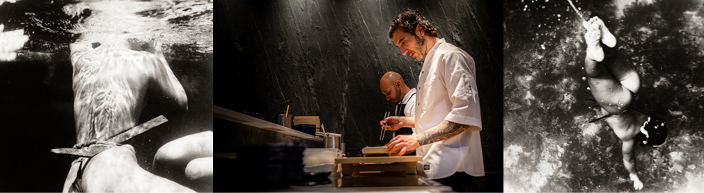 Se trata de una reinterpretación de la cocina japonesa sin artificios y sin florituras, ofreciendo justo lo que se propone. En este caso, se basa en la tradición de las amas japonesas, las buceadoras que exploran el mar en busca de tesoros sin más ayuda que su instinto y su capacidad pulmonar.