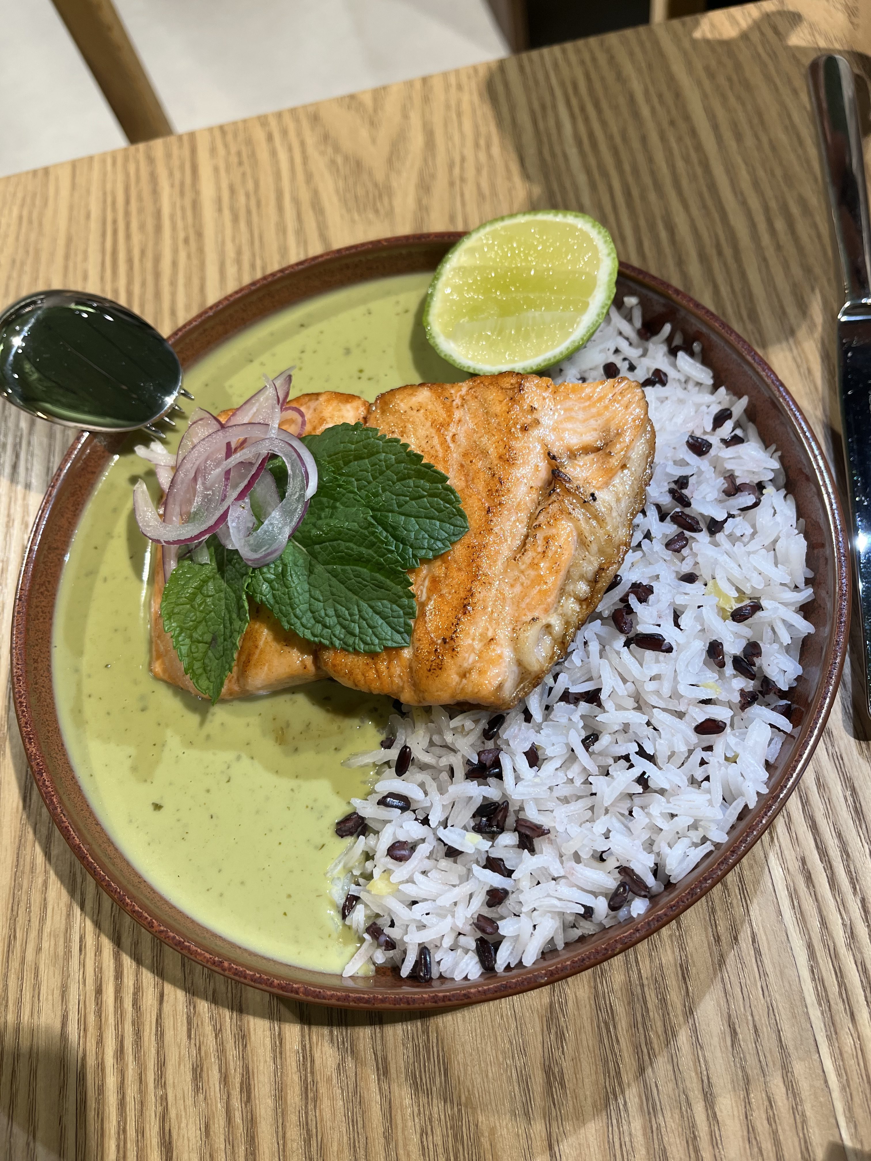 Por otro lado, sus croquetas puttanesca con bechamel, berenjena asada y toque de gilda madrileño. Su exquisito salmón al curry con arroz aromático que ya es uno de los favoritos. Y el labneh con tomates marinados: Yogur labneh combinado con tomates marinados en una vinagreta inspirada en el kimchi japonés, acompañado de pan de pita. Una fusión de sabores libaneses y toques orientales.